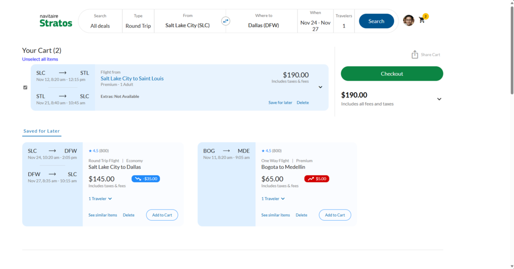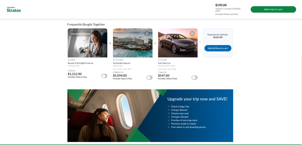 Selective checkout is available on Stratos and it is non-homogenous so hotels, cars, activities, refundability etc can all be added at the same point, too.